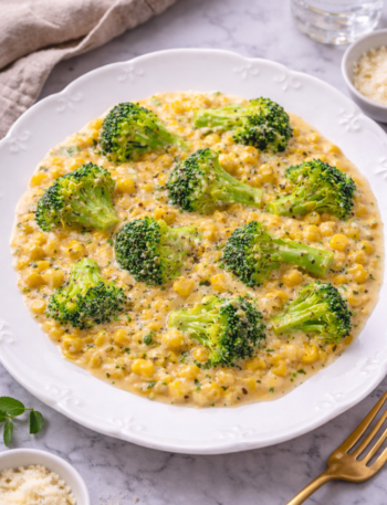 Broccoli Cheddar Chickpea Skillet is a creamy, protein packed one pan dinner ready in 30 minutes with bold cheddar flavor …