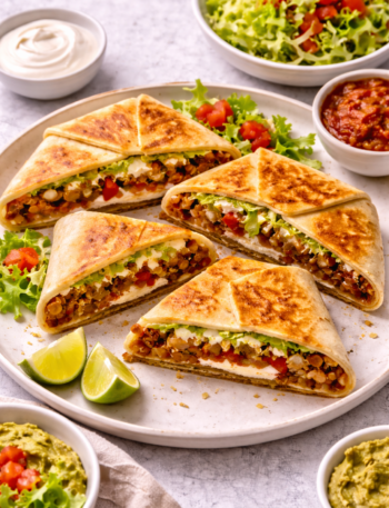 Vegan Crunchwrap Supreme packed with bold spices, crispy layers, and creamy plant based sauce for the ultimate homemade comfort food …