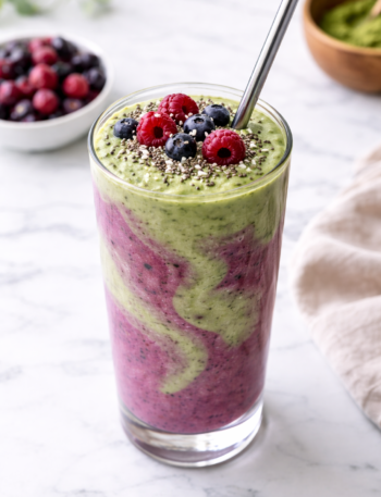 Fresh, vibrant, and naturally energizing! This Matcha-Berry Swirl Smoothie is the perfect sweet boost to power your day!