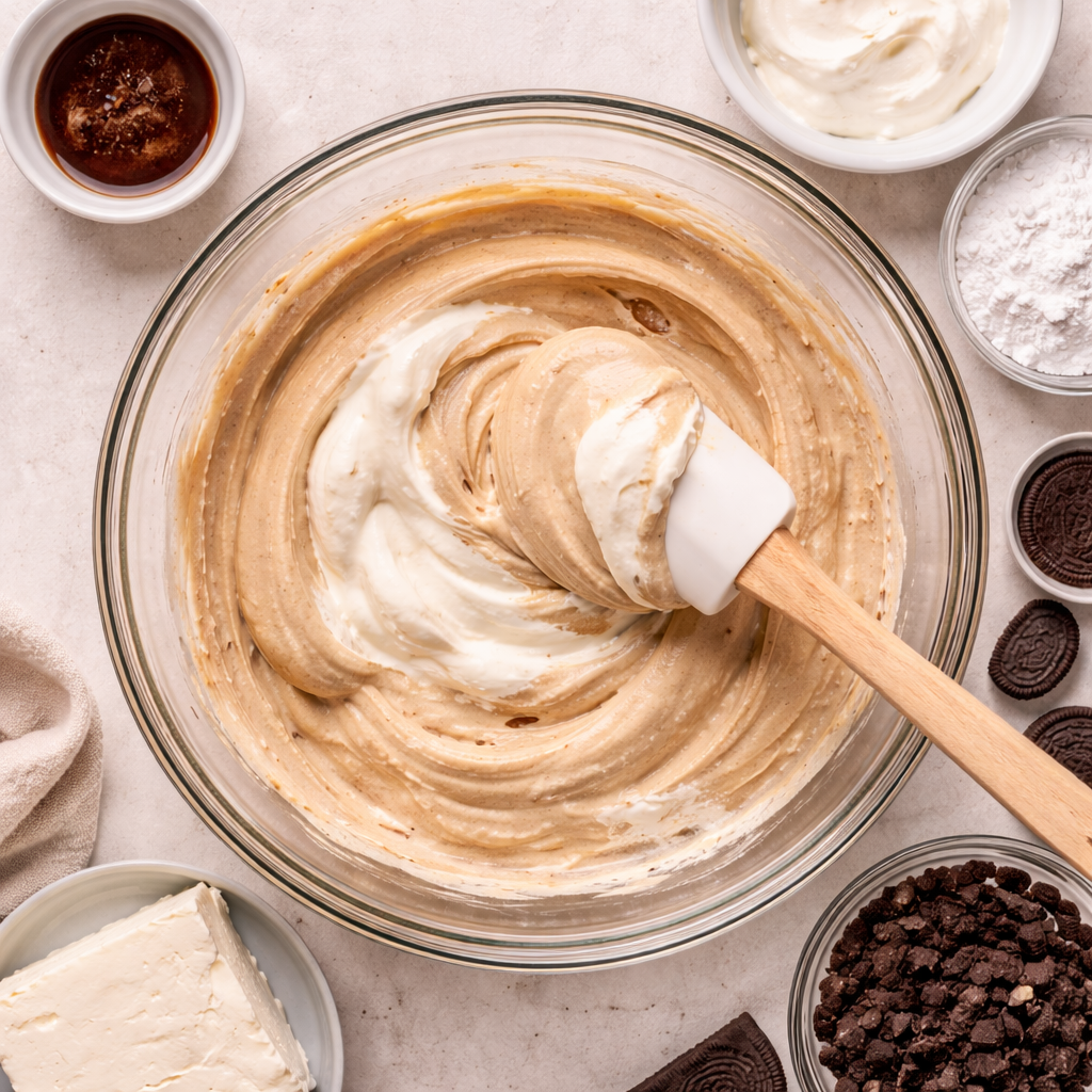 In a separate bowl, whip heavy cream until soft peaks form. Fold gently into the coffee cream cheese mixture until light and creamy. Chill for 20 minutes.