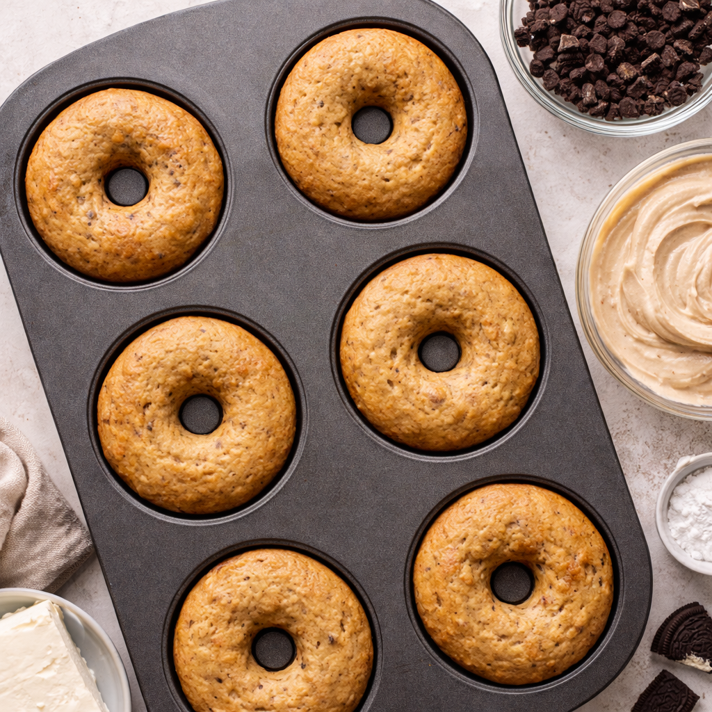 Fill donut cavities three quarters full. Bake for 16 to 18 minutes until cooked through. Let cool completely before decorating.