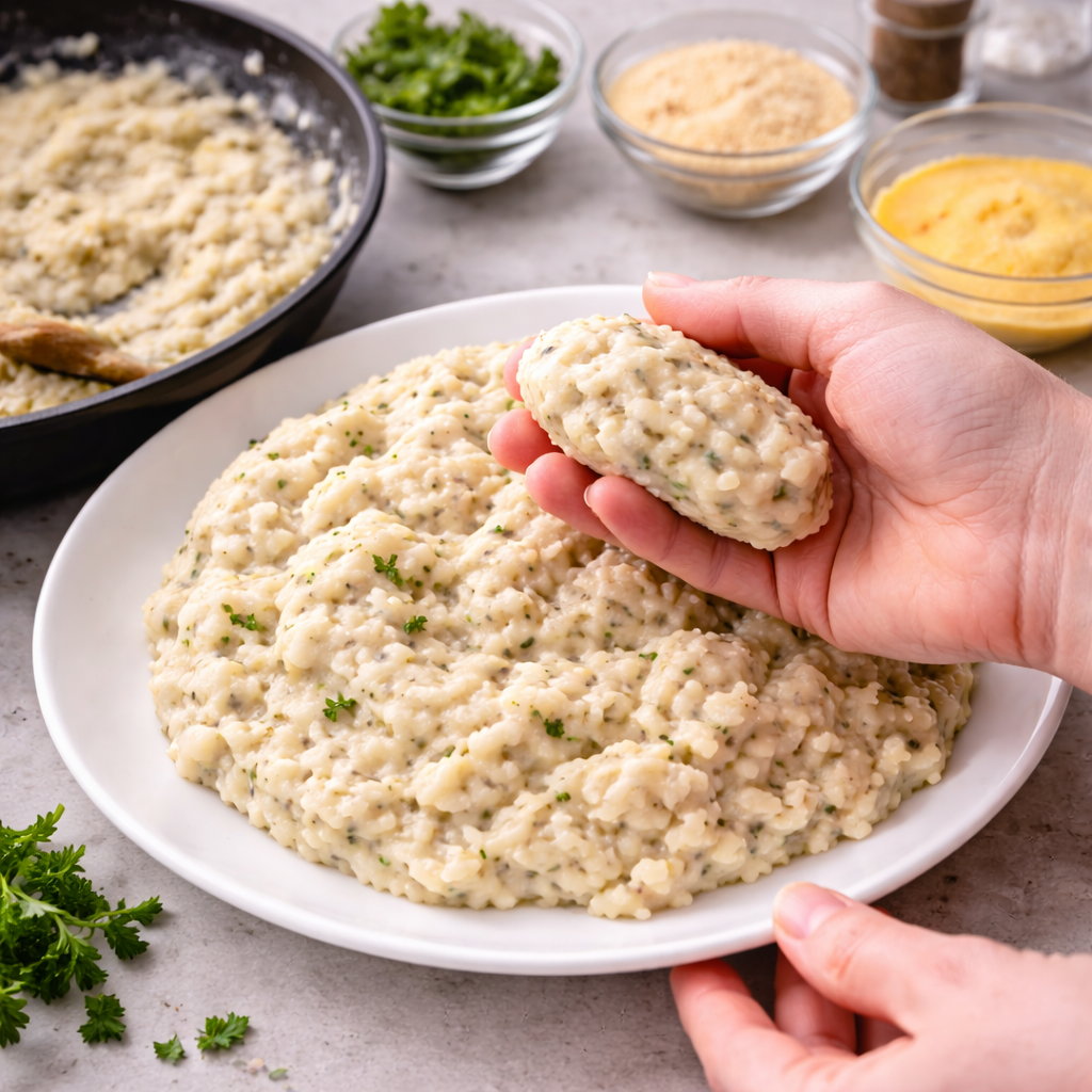 Transfer the mixture to a plate and allow it to cool. Once cooled, shape the mixture into small croquettes.