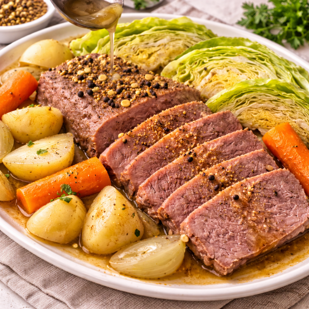 Corned Beef and Cabbage is a classic hearty meal made with slow simmered corned beef brisket, tender cabbage, carrots, and potatoes. This comforting dish is simple to prepare and perfect for a satisfying family dinner.