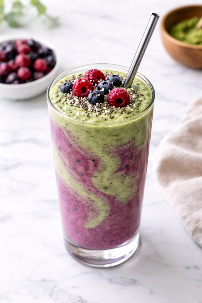 Energizing Matcha-Berry Swirl Smoothie