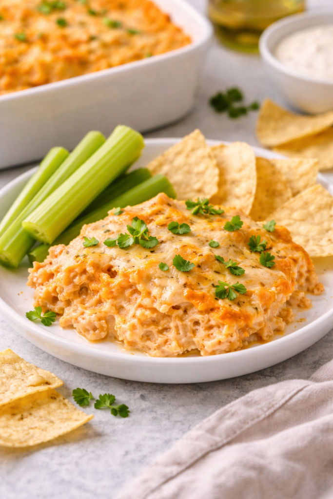 Light & Creamy Buffalo Chicken Dip is a comforting and flavorful appetizer made with tender shredded chicken, a creamy yogurt-based sauce, and just the right amount of heat. This lighter version keeps the classic bold buffalo flavor while staying smooth, satisfying, and perfect for sharing at parties, game days, or casual gatherings.