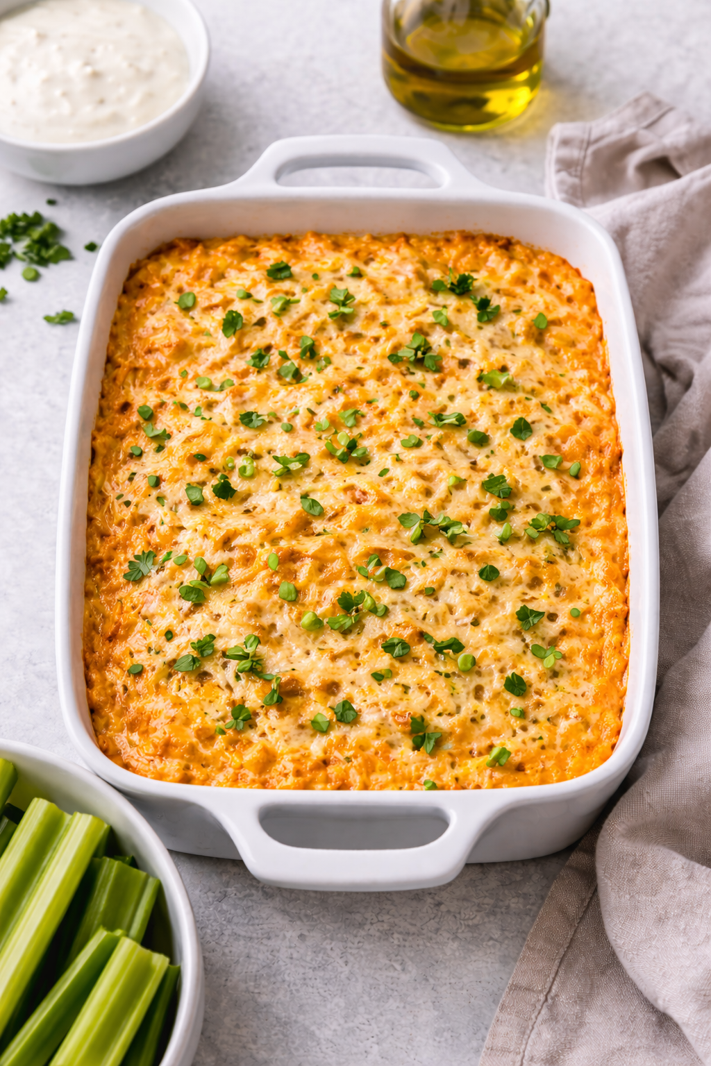 Light, creamy, and packed with bold flavor, this Buffalo Chicken Dip is the guilt-free snack that still brings the heat in every bite!