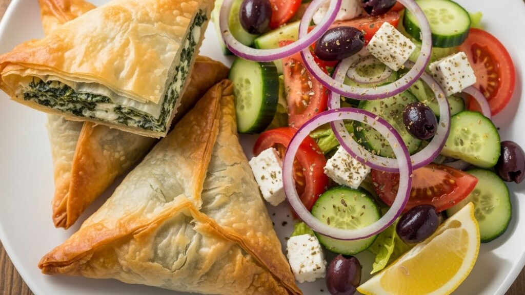 Crispy, savory, and bursting with fresh Mediterranean flavors — these Super Spinach Pies paired with a Greek-Style Salad turn a simple vegetarian meal into a vibrant, feel-good feast!