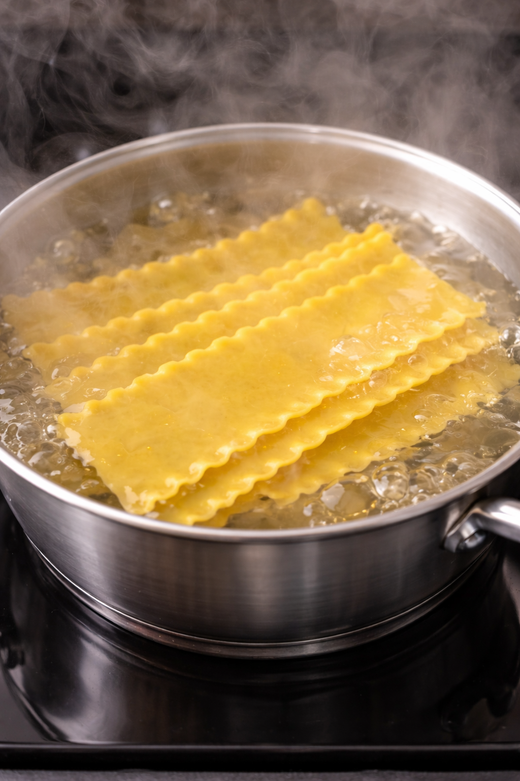 Preheat the oven to 180°C (350°F) and cook the lasagna noodles according to package instructions. Drain and set aside.